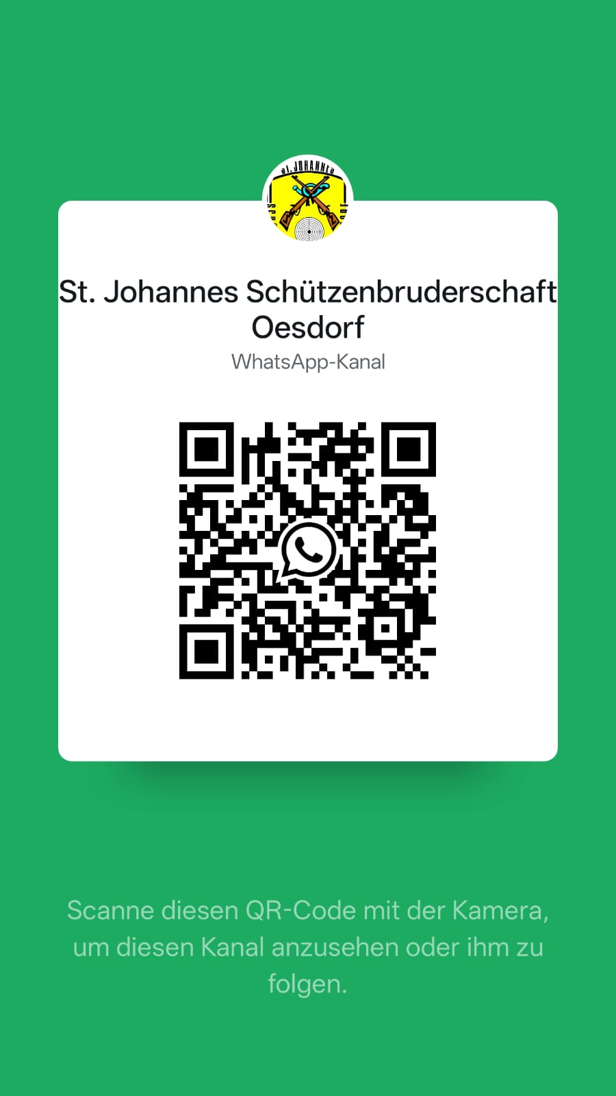 Die neusten News und Infos gibt es im WhatsApp Kanal der St. Johannes Schützenbruderschaft.